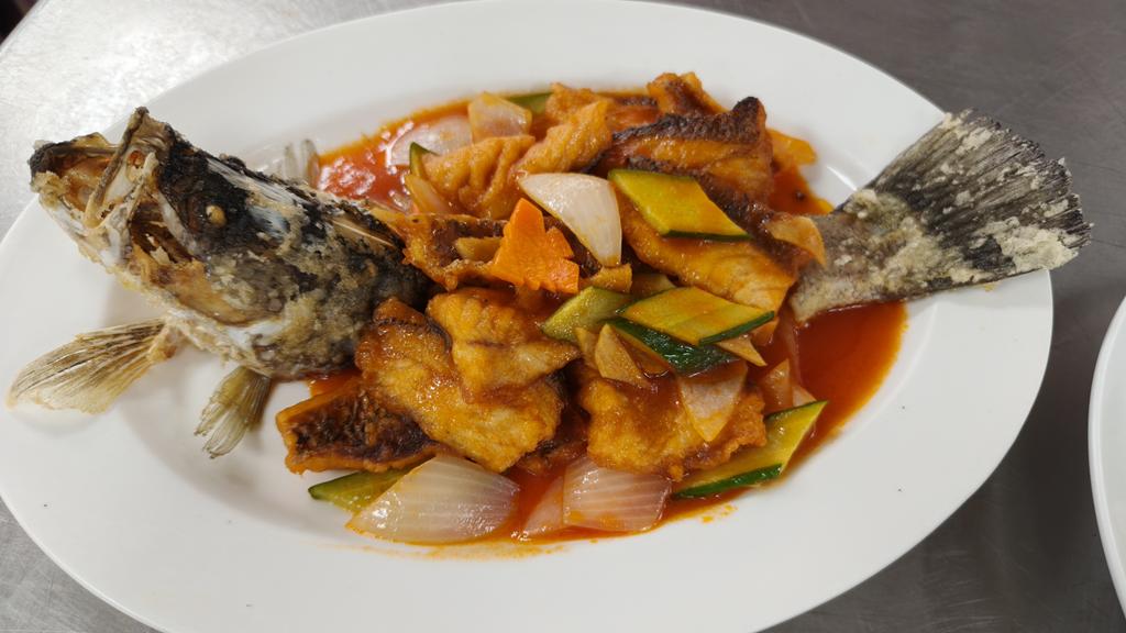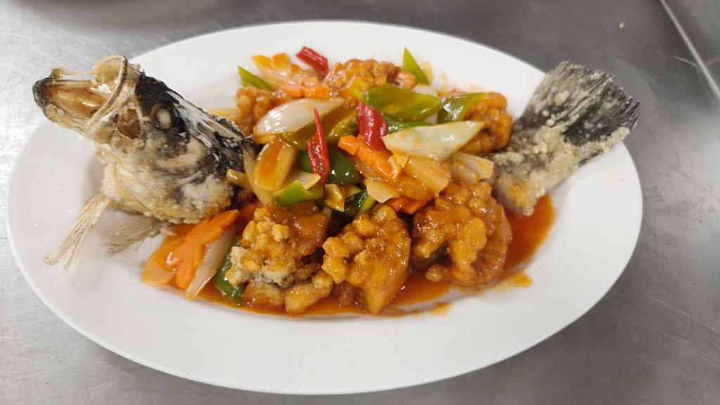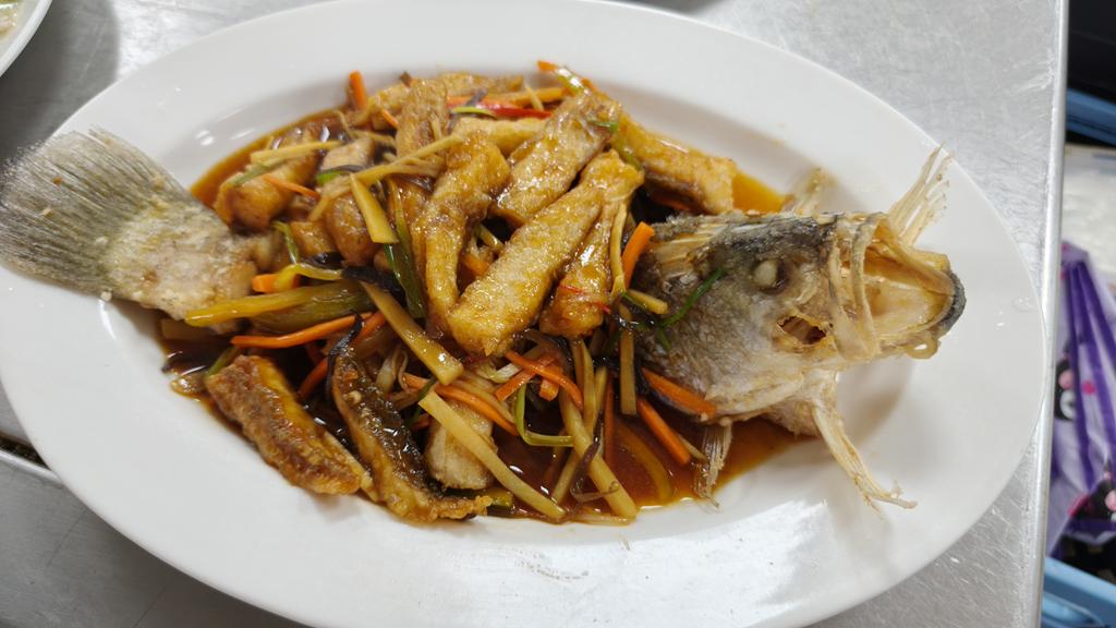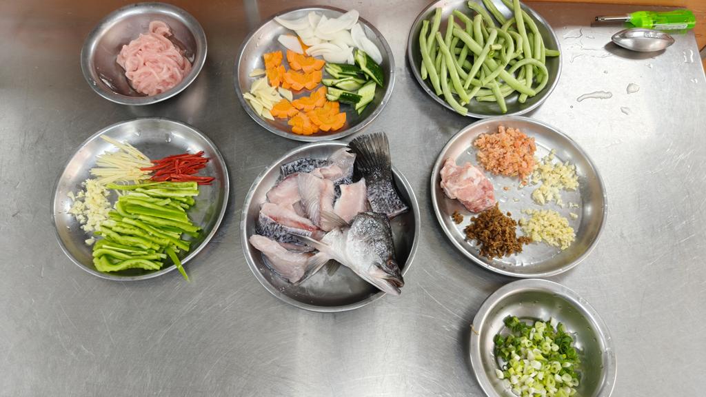 單元301-6糖醋瓦片魚,燜燒辣味茄條,炒三色肉丁