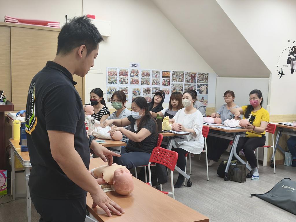 新北社兒托字第1132453202號,11406嬰幼兒cpr暨成人基本救命術研習花絮,本課程可抵托育人員在職訓練研習時數8小時,標準課程須時8小時,含課堂講解、實地操作演練以及筆試/術科測驗。效期兩年。