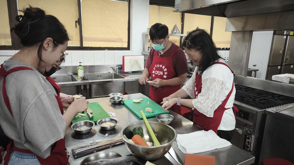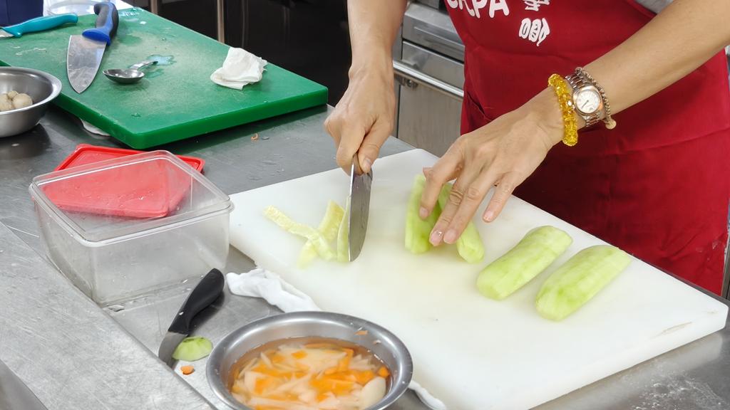 (2)、示範教學:講師示範西餐考前題組20道單元,講授示範洗滌、切割、調理、收善等標準程序。