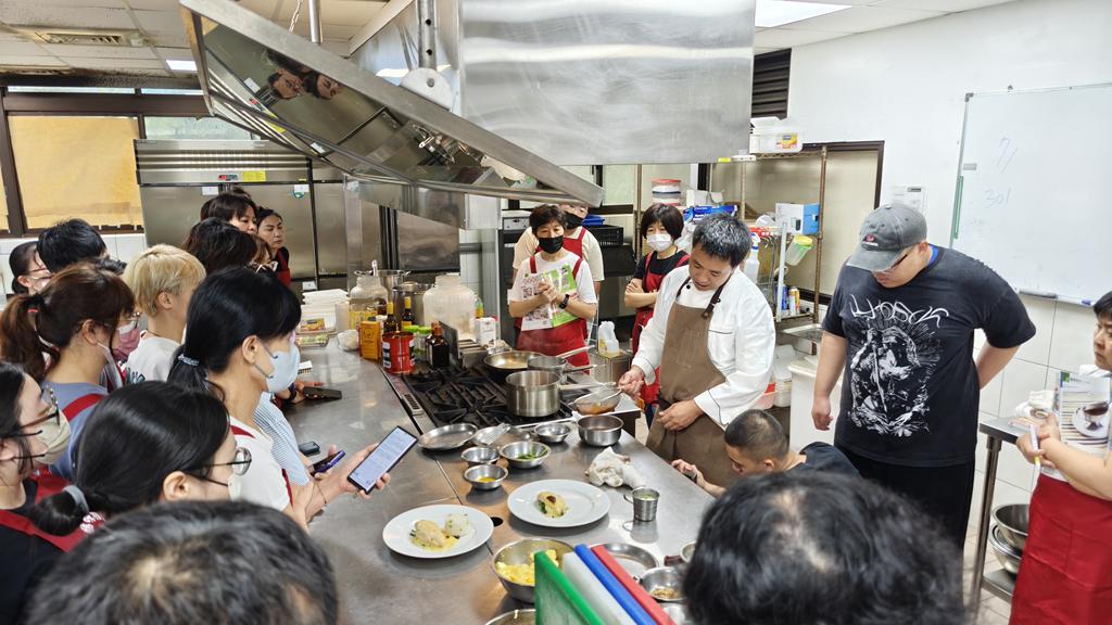 (2)、示範教學:講師示範西餐考前題組20道單元,講授示範洗滌、切割、調理、收善等標準程序。