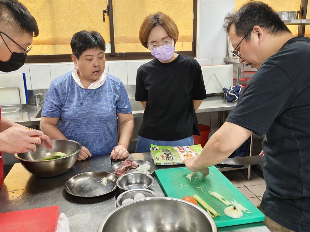 (2)、示範教學:講師示範西餐考前題組20道單元,講授示範洗滌、切割、調理、收善等標準程序。