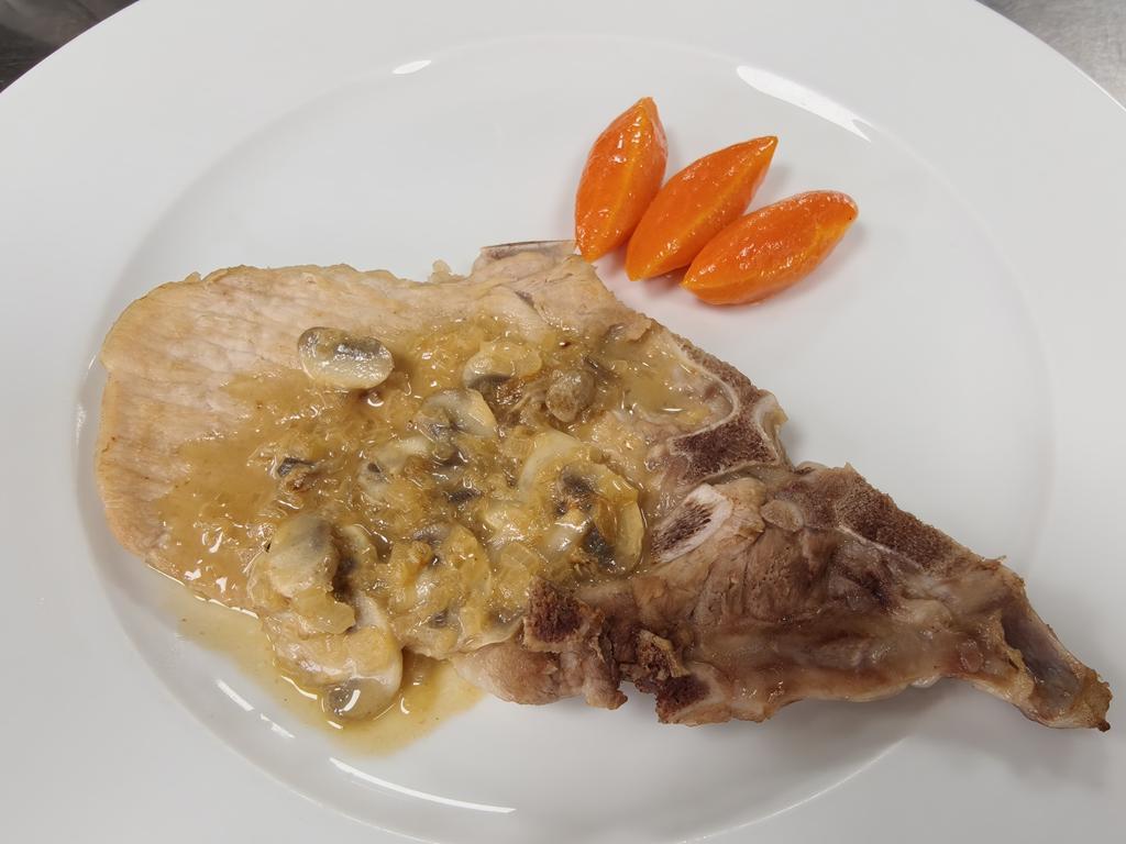 E3 煎帶骨豬排附褐色洋菇醬汁