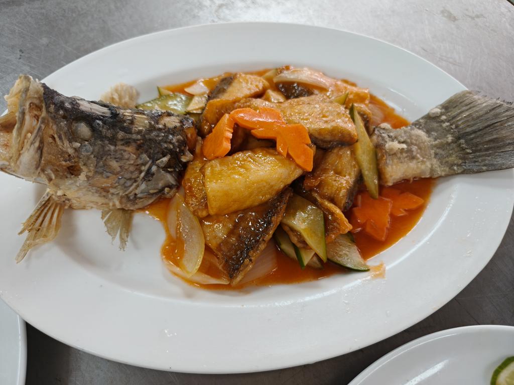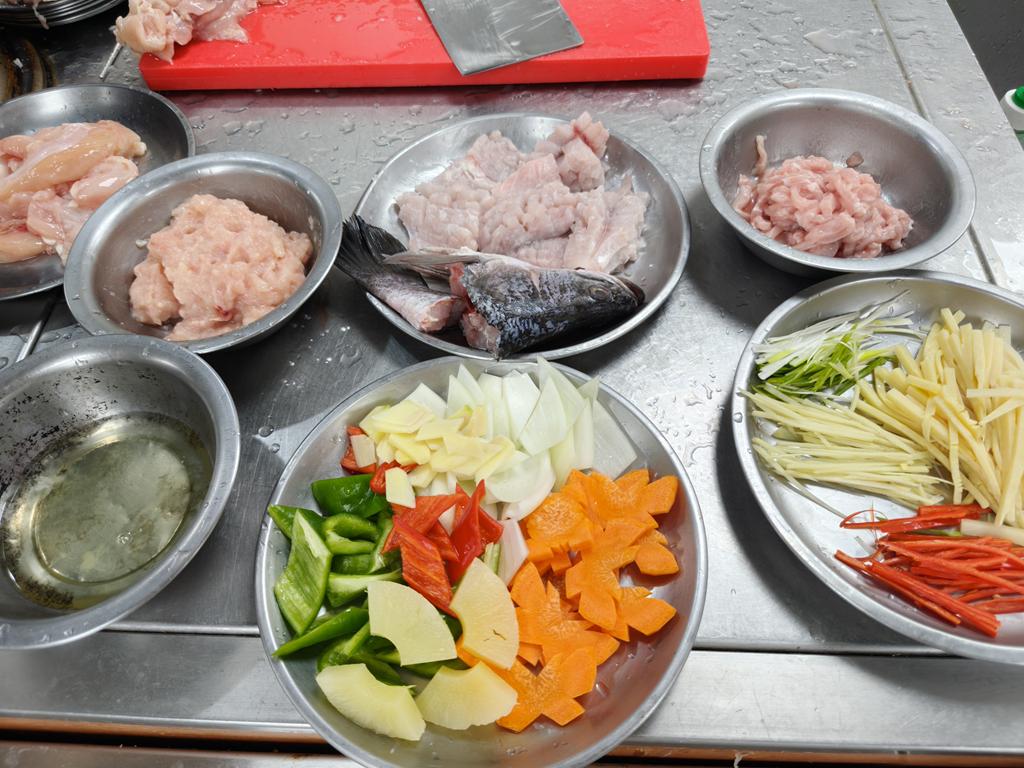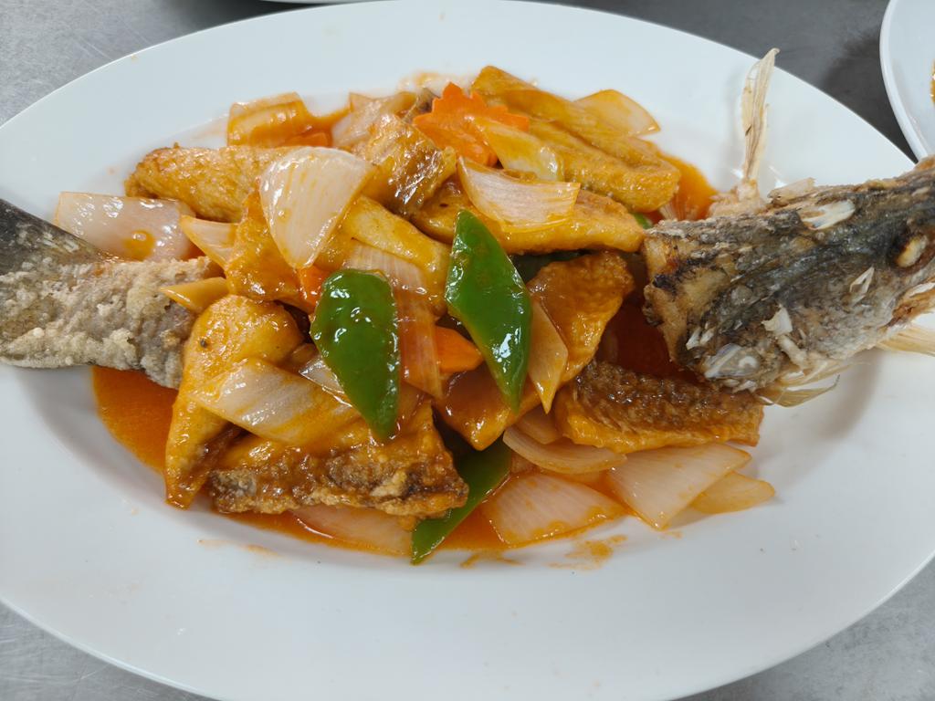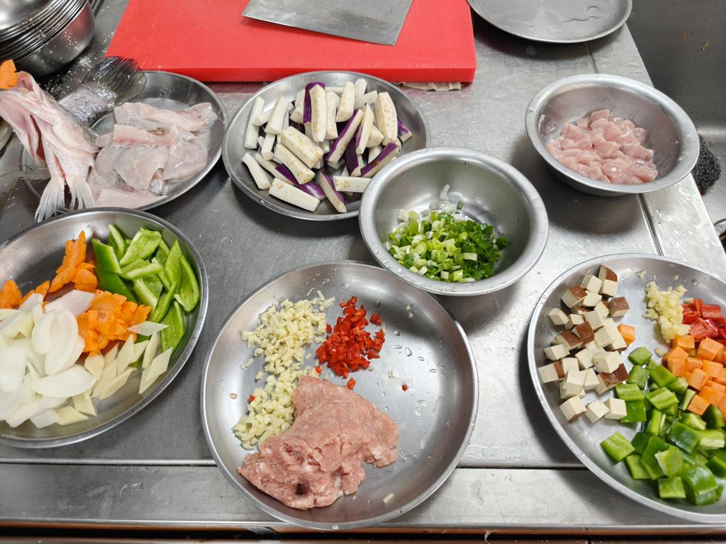 單元301-6糖醋瓦片魚,燜燒辣味茄條,炒三色肉丁