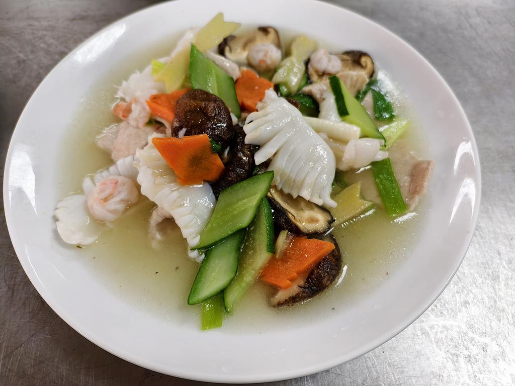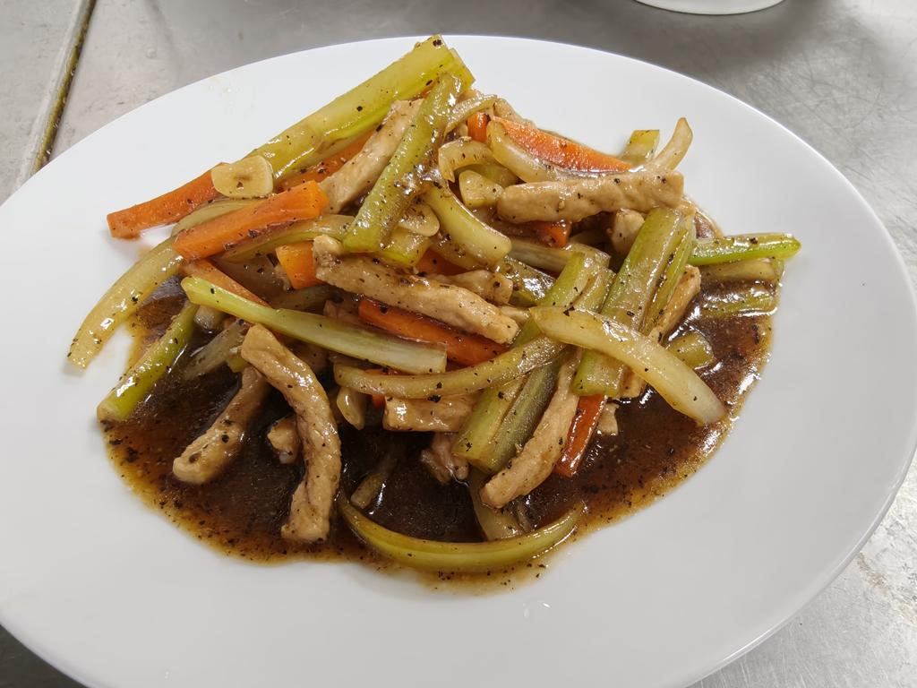單元301-4黑胡椒豬柳,香酥花枝絲,薑絲魚片湯