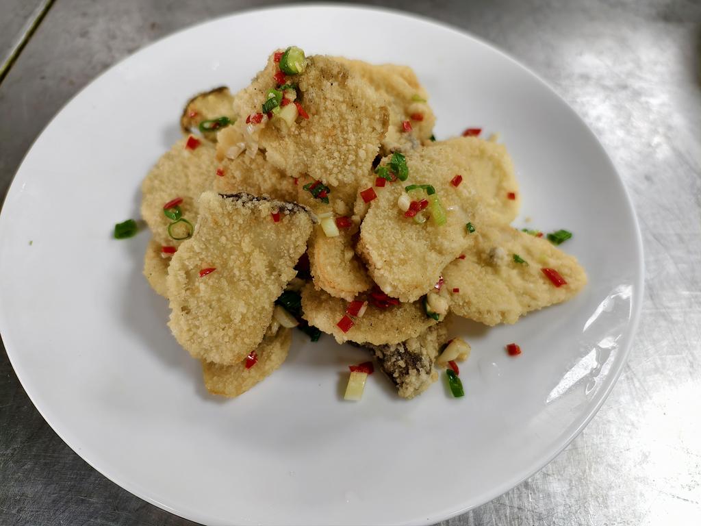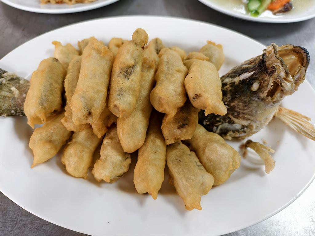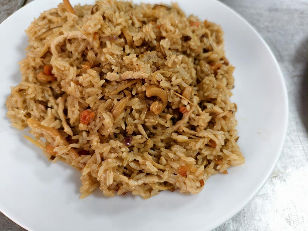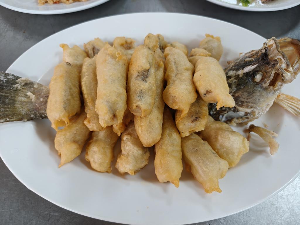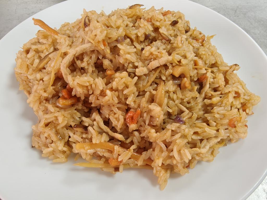 單元301-5香菇肉絲油飯,炸鮮魚條,燴三鮮